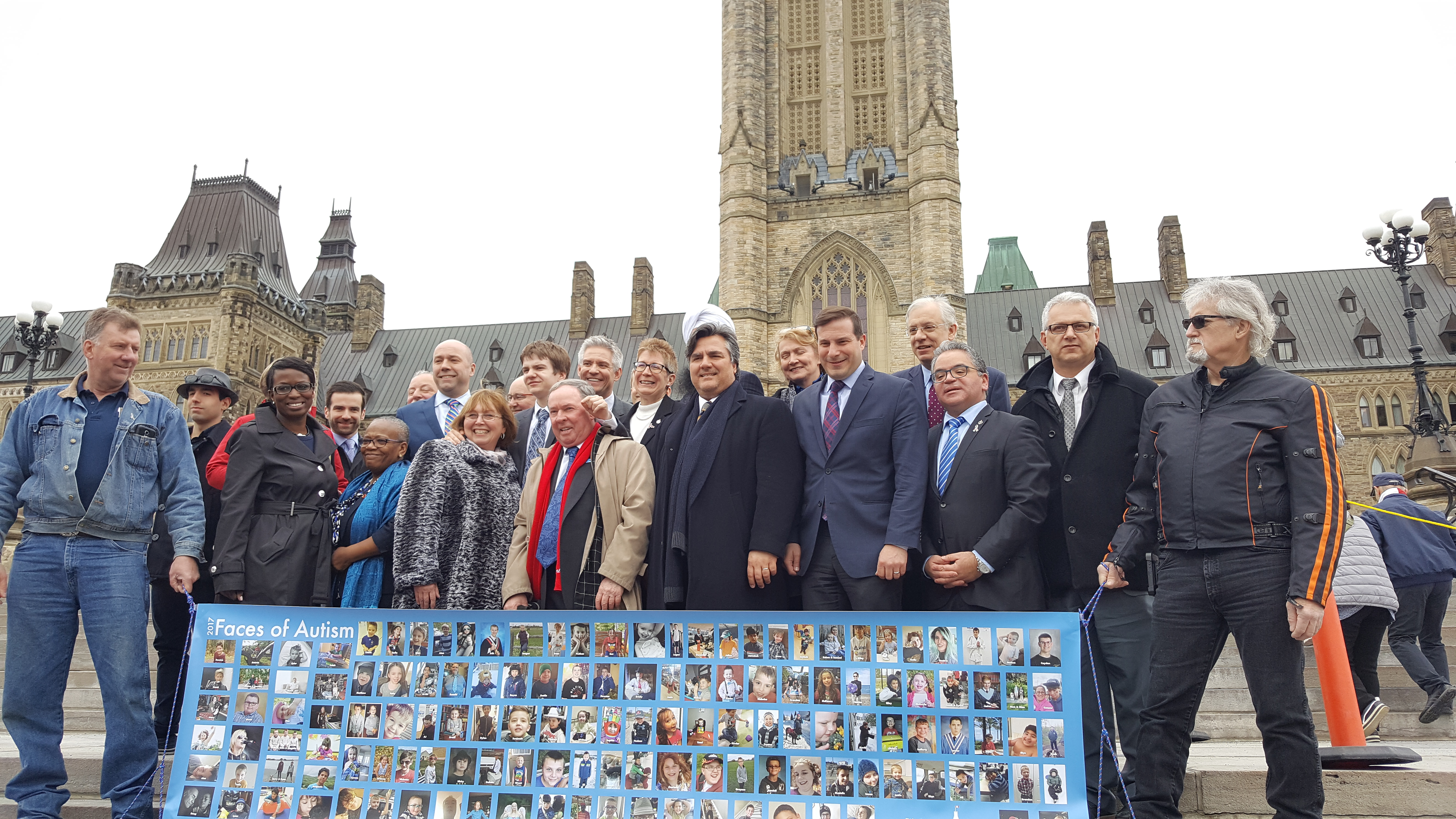 Dr. Hébert Lillace with the Honourable Mike Lake, Matthew Dubé, Member of Parliament, and the Honourable Carla Qualthrough Minister of Sport and Persons with Disabilities, and Canadian Senetor Jim Munson, among Autism self-advocates and supporters of CAP, the Canadian Autism Partnership, at the 2017 Canadian Leadership Summit on Autism.